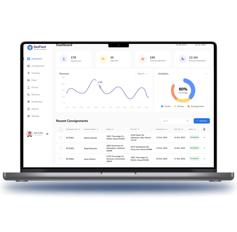 A user-friendly and powerful dashboard to oversee all aspects of your online courier delivery business, crafted to improve efficiency and enhance the overall user experience.