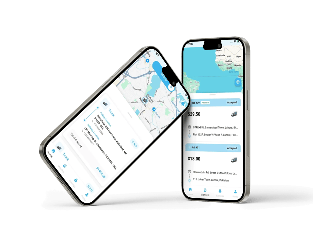 • Driver App for job acceptance, navigation, and delivery completion