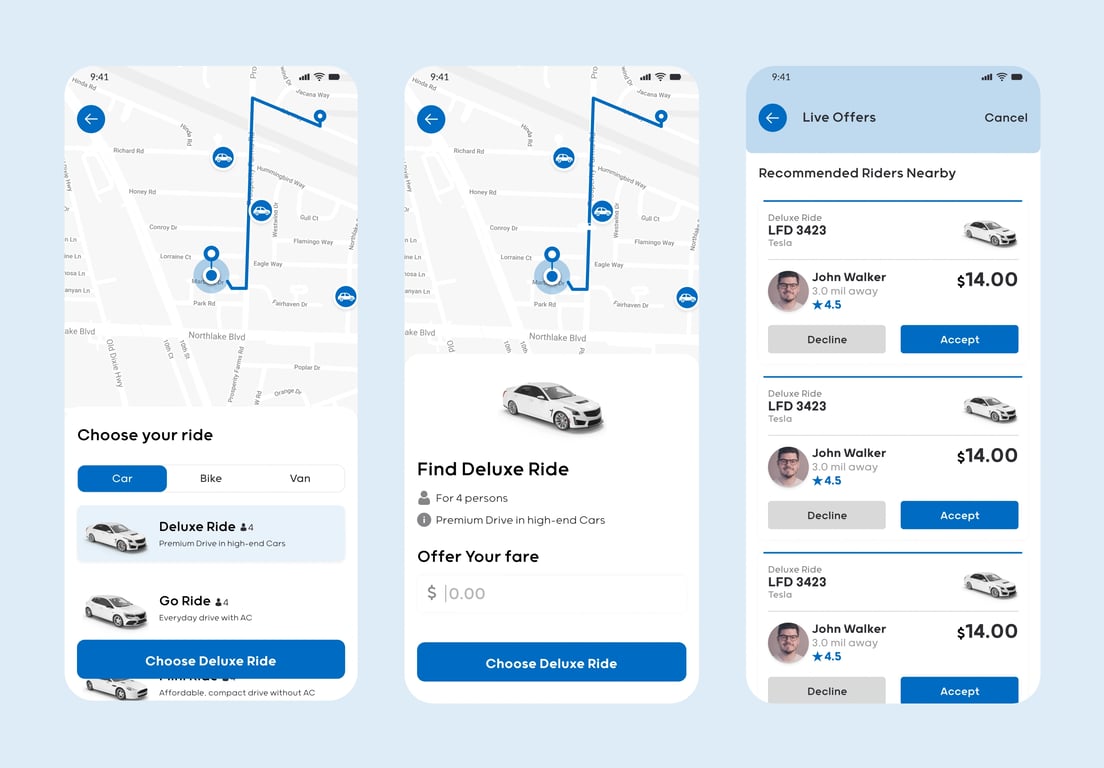 Users can quickly book rides and choose from various vehicle categories, including economy, luxury, and shared rides, based on their travel needs.
