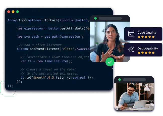 Our vetting process is more comprehensive than Silicon Valley job interviews. We evaluate over 100 skills, including data structures, algorithms, systems design, and specialized frameworks.